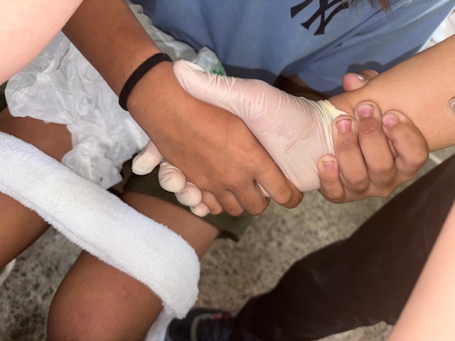 そんな震える手を高校生達が握りしめ「カヤモヤン(=現地の言葉で、頑張って)」と声をかけ励ましてくれます。