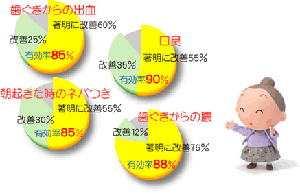 カビは根を下ろすときに酸を出しますので、歯が溶けむし歯になるリスクもあります。 歯根の部分にもにも根を下ろすので、そのことによって知覚過敏がおきることも分かってきています。 歯周病菌は、歯ぐきの出血した部分の血管から体内に侵入してきますので体に害が出てきます。 |